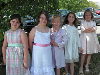 The girls in their Easter dresses just before church on Easter morning. From left to right, Kaylee, Savannah, Ava, Anna, and Katie.
