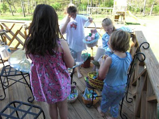 Emily had a special envelope that had a rhyming riddle that was also a madlib. The kids had to decipher the madlib and then solve the riddle to get even the first clue about where their Easter baskets might be. However, the Easter Bunny threw in an extra curve. In order to find out the words that could be used for the madlib, the kids had to act out the clue to all the others in a game of charades. Once they got it right, the master of ceremonies (i.e. Emily) was able to give the next kid a clue to act out until all the kids had acted out all of the clue words for the madlibs.