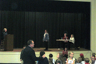 Kaylee did really awesome in this year’s spelling bee. Last year, Rachel wouldn’t let Kaylee live down her first round elimination on a word that they told her would be on the spelling bee. This year she made it through three rounds and even had a word – “solemn” – come up that we’d studied together. Yeah Kaylee! On a related note, I was hoping to see Anna compete. But for reasons of her own, she opted out.
