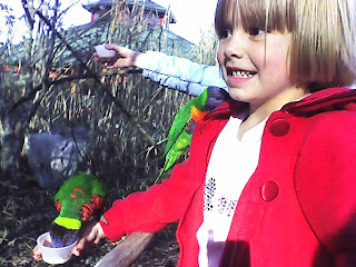 The highlight of the trip was the Lorakeet Landing. The pretty birds are always a lot of fun and were climbing all over the kids. The zoo charges a buck for the “nectar” to feed the birds. The birds then go crazy for the sugar water and will drink it from your hands.